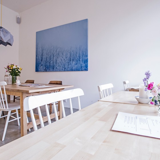 The stylish, beautifully furnished and spotless interior where you can recharge your batteries while drinking a nice cup of fresh-roasted coffee or a cup of exquisite tea from the plantations in Sri Lanka or Japan.